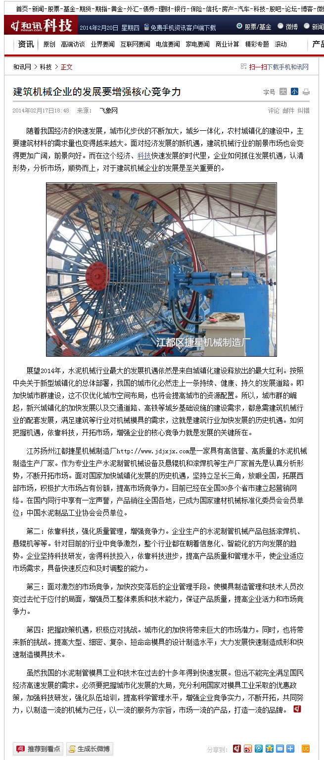 南京日報(bào)網(wǎng)對芯模振動模具、滾焊機(jī)、懸輥機(jī)廠家捷星機(jī)械的報(bào)道, 更多報(bào)道請關(guān)注 :http://m.hnzsks.cn