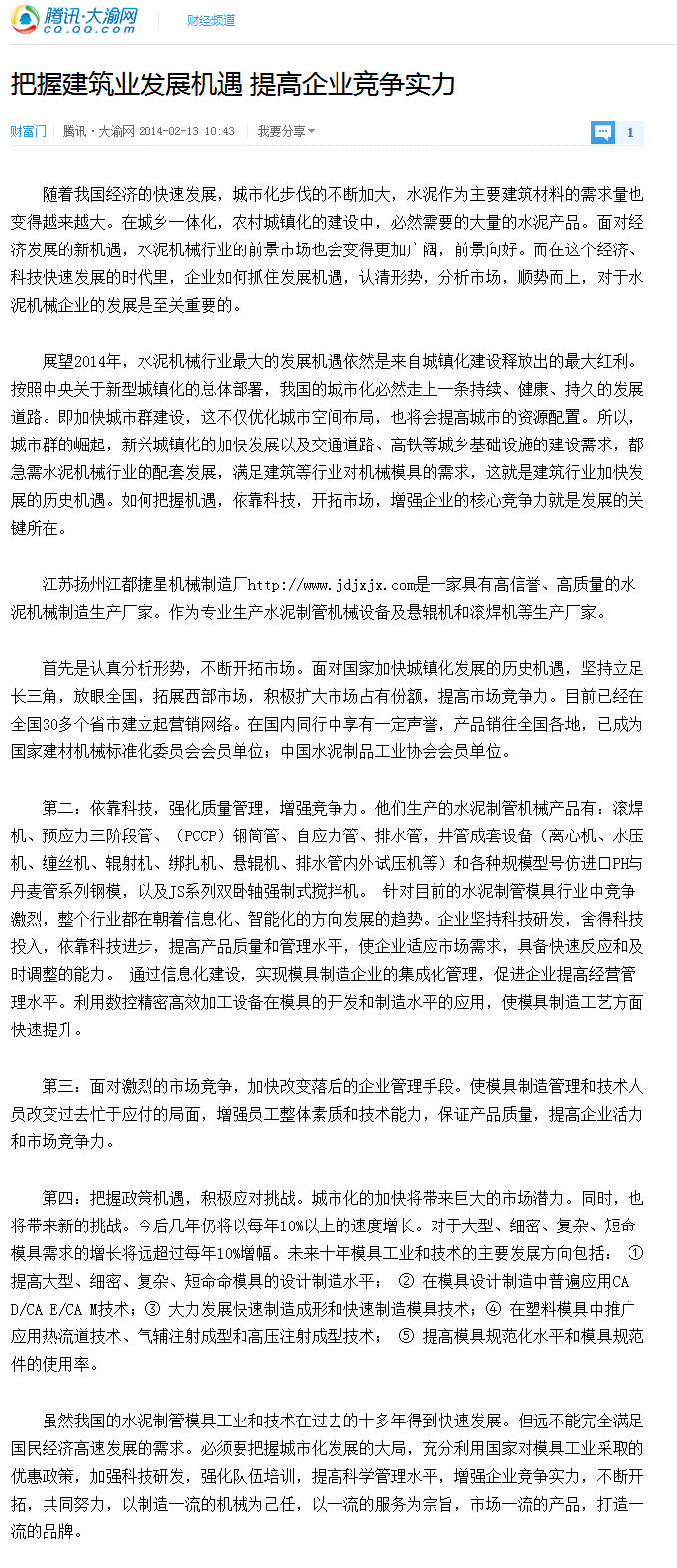 騰訊網(wǎng)專題報道滾焊機,芯模振動模具,懸輥機的專業(yè)廠家江都捷星機械廠