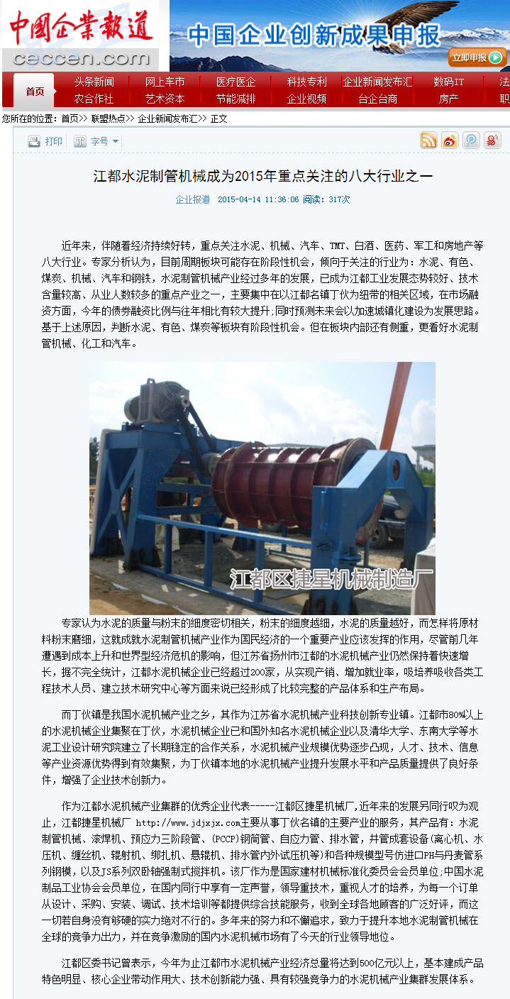 中國企業(yè)報(bào)道網(wǎng)報(bào)道江都芯模振動(dòng)模具企業(yè)捷星